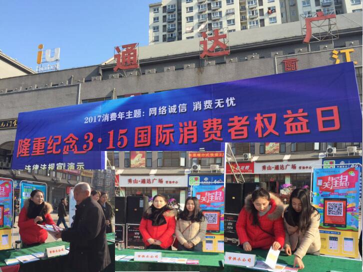 為隆重紀(jì)念“3.15”國(guó)際消費(fèi)者權(quán)益日,推動(dòng)網(wǎng)絡(luò)誠(chéng)信建設(shè),維護(hù)消費(fèi)者合法權(quán)益。3月15日上午,池州供水公司積極響應(yīng)池州市工商質(zhì)監(jiān)局、池州市消保委、貴池區(qū)市場(chǎng)監(jiān)督局、貴池區(qū)消保委等部門號(hào)召,在秀山門通達(dá)廣場(chǎng)開(kāi)展以“網(wǎng)絡(luò)誠(chéng)信、消費(fèi)無(wú)憂”主題宣傳、咨詢、服務(wù)活動(dòng)。