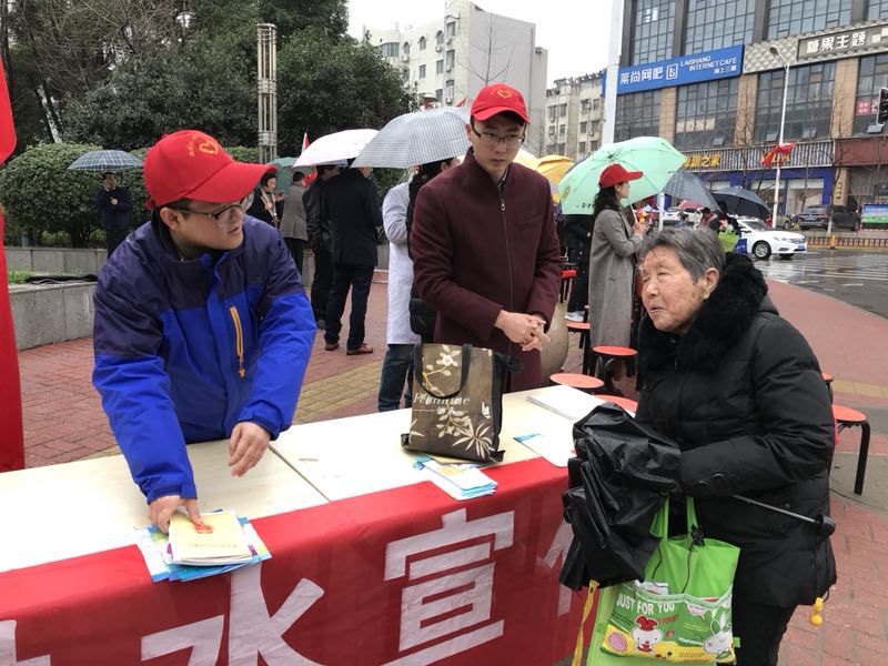 早晨8點多,冒著春雨,公司一行人很早來的秋浦花園廣場擺好展臺進行宣傳和志愿服務。在活動現場,志愿者們的身影活躍在每一個角落,重點服務困難老人。一位老奶奶向我們咨詢水價的問題和戶表改造的費用,工作人員都耐心解答。還有位老爺爺跑過來說家里的自來水好小,我們維修師傅馬上趕過去,經檢查發現,樓下的閘閥沒開到位,立馬為他開到最大。老百姓紛紛感謝志愿者所做的一切,并希望以后能繼續開展此類活動。