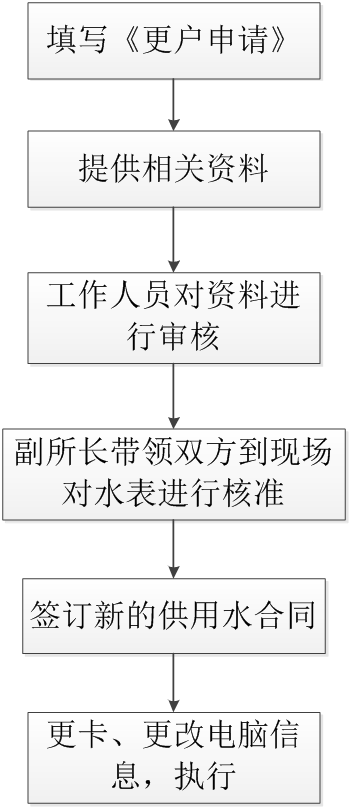 注:過戶前必須交清水費(fèi),并將原《交費(fèi)卡》收回方可辦理相關(guān)事宜。