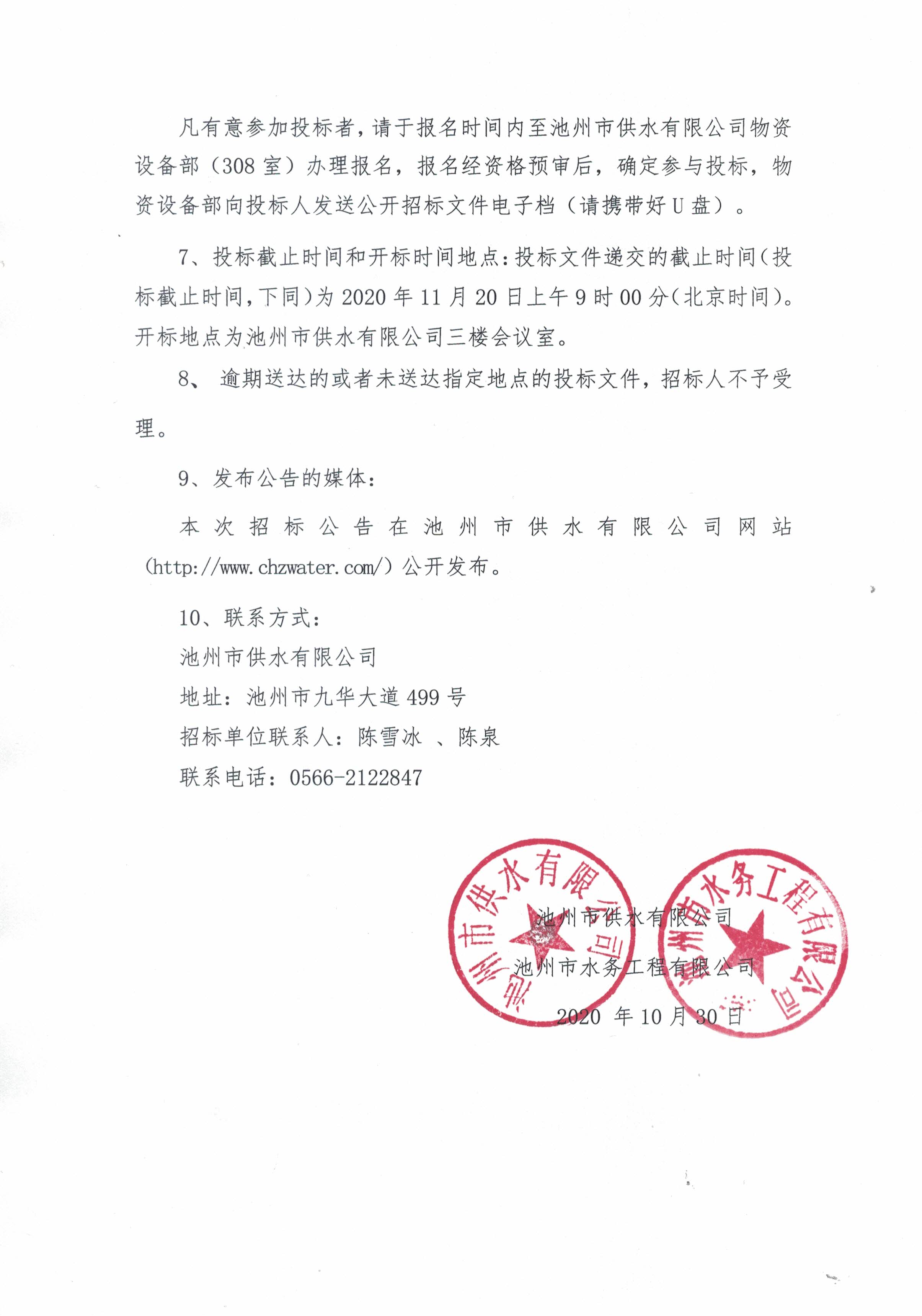 | 池州市供水有限公司、池州市水務(wù)工程有限公司2021-2022年度遠(yuǎn)傳水表公開招標(biāo)公告 | |