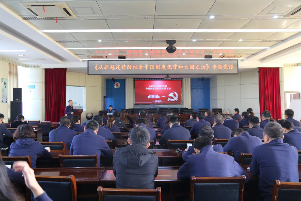 為深入貫徹學(xué)習(xí)習(xí)近平新時代中國特色社會主義思想和黨的十九屆五中全會精神,引導(dǎo)黨員干部增強“四個意識”,堅定“四個自信”,堅決做到“兩個維護”,進一步凝聚人心、團結(jié)力量,11月9日上午,池州市供水、排水、水環(huán)境、水業(yè)四公司聯(lián)合開展《從新冠疫情防控看中國制度優(yōu)勢和大國之治》專題黨課。本次黨課,邀請到安徽省委講師團、安徽省直機關(guān)講師團汪慶明教授為大家授課。本次學(xué)習(xí)由公司支部書記、董事長楊觀樂同志主持,全體黨員、發(fā)展對象、入黨積極分子以及三級生產(chǎn)技能崗以上,共計約150余人參加。