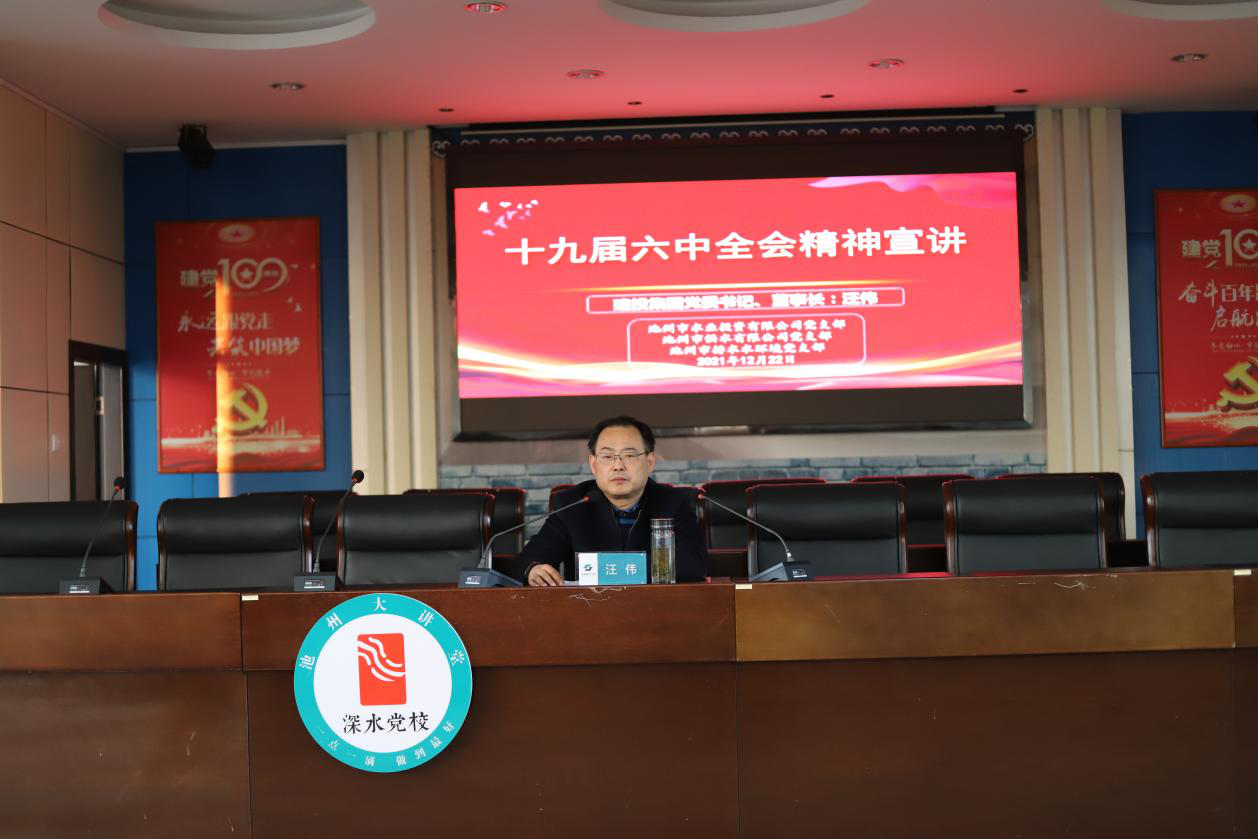最后,汪偉在供水公司作十九屆六中全會精神宣講黨課。他強調黨員干部要發揮“頭雁效應”,從百年黨史中汲取智慧和力量,在擔當實干上展現新風貌,深入學習貫徹黨的十九屆六中全會精神,深刻領會、準確把握全會精神實質和核心要義,并貫徹落實到實際工作中,立足主責主業,潛心靜氣做事、主動擔當作為、恪守清廉作風,做好民生保障工程,為建設“三優”池州作出新貢獻。