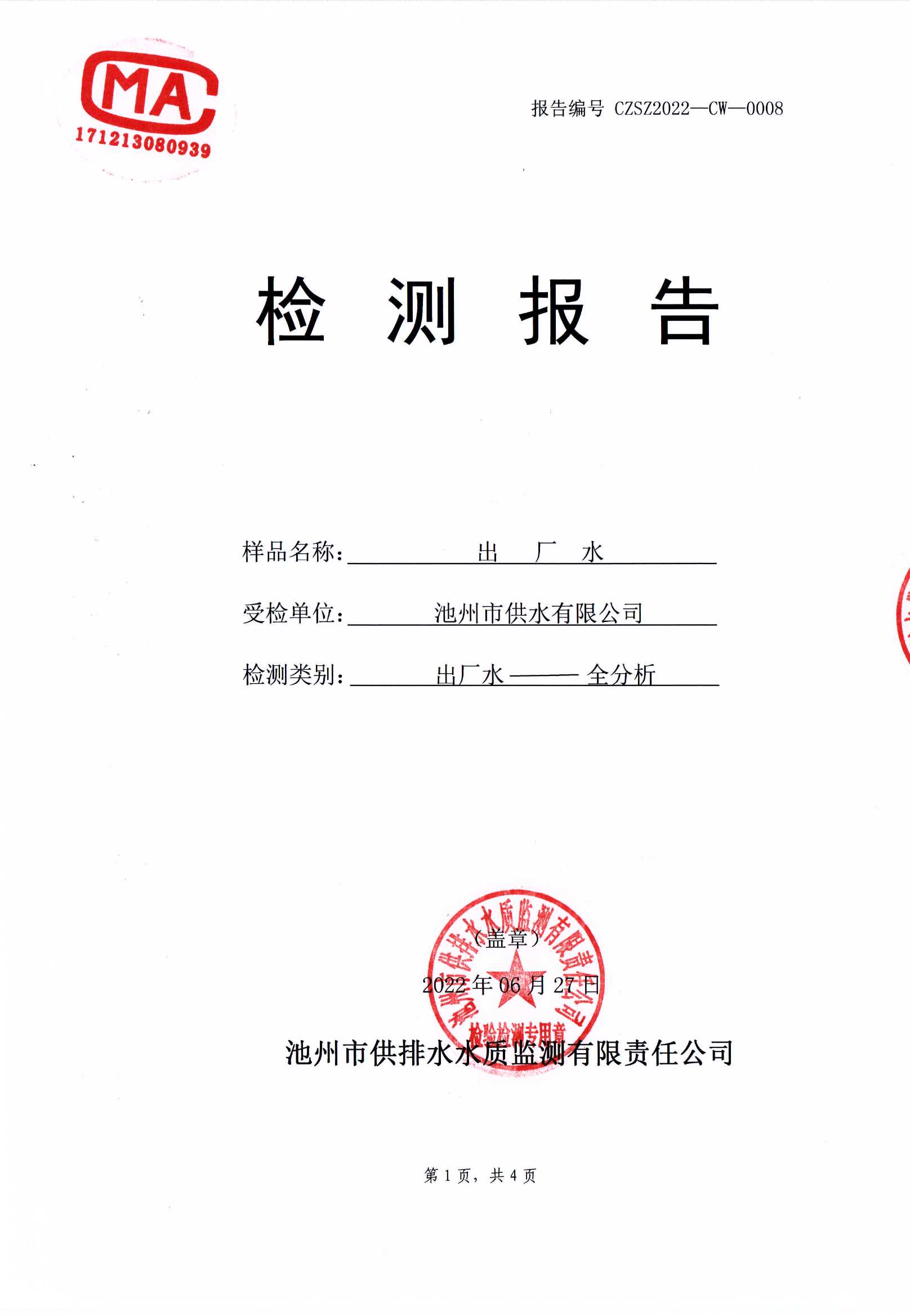 | 池州市供水有限公司出廠水(全分析)檢測報(bào)告(2022.07.14) | |