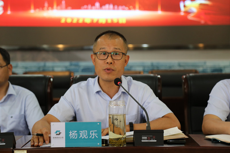 李張兵指出,2022年上半年,公司堅持以習近平新時代中國特色社會主義思想為指導,深入貫徹落實黨的十九大和十九屆歷次全會精神,貫徹新發展理念、立足新發展階段、積極融入新發展格局,扎實做好了安全生產、供水保障、服務提升、工程建設等各項工作,公司運營穩中向好;同時,在深刻分析公司目前面臨的風險挑戰基礎上,他指出,下半年,我們要突出重點工作,抓安全、優化營商環境,突出高質量發展,實施質量提升計劃,突出項目建設,創新黨建引領。