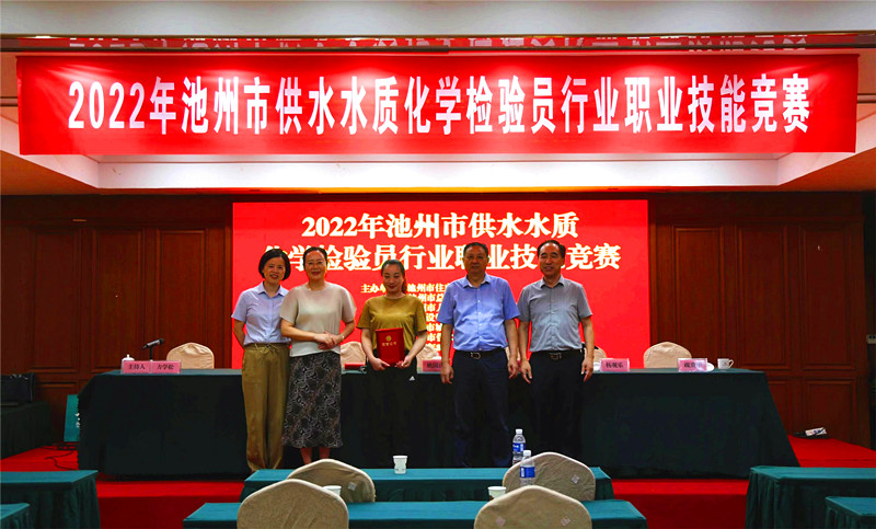 2022年8月12日下午,2022年池州市供水水質化驗員行業技能職業競賽經過2天的激烈競爭圓滿結束。來自市供水有限公司、市排水有限公司、東至縣自來水廠、東至縣東流自來水廠、龍江供水有限公司,石臺縣供水有限公司、青陽縣蓉城供排水有限責任公司、市九華山供排水有限公司的41名選手參加比賽。市供水公司團隊在此次競賽中獲得極佳成績,碩果累累。其中鮑平珍同志榮獲本次競賽的一等獎,并榮獲池州市“五一勞動獎章”和“池州市技能手”稱號;鮑明云、朱方園同志榮獲二等獎;董言桐、童彤同志榮獲三等獎。