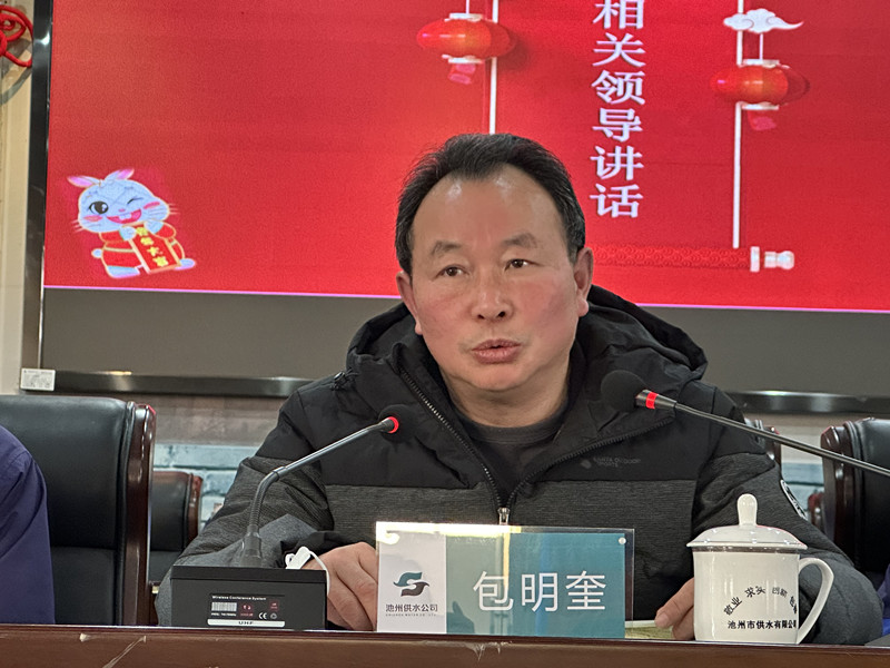 最后,上級主管部門領(lǐng)導(dǎo)包明奎主任對公司2022年的工作給予了充分肯定,對獲得表彰的先進(jìn)集體和個(gè)人表示熱烈祝賀,對池州供水這個(gè)優(yōu)秀集體勇于奉獻(xiàn)和敢于拼搏的精神表示極大的嘉許,并提前祝全體供水人新春快樂!他指出,供水公司能克服重重困難,2022年取得如此驕人的成績,實(shí)屬不易,也為2023年爬坡提速提供了堅(jiān)實(shí)基礎(chǔ)。他要求池州供水公司全體干部職工,應(yīng)保持不屈不撓、堅(jiān)毅不拔的精神,繼續(xù)譜寫新輝煌。一要堅(jiān)持人民至上,政治引領(lǐng),著力解決人民群眾難點(diǎn)、痛點(diǎn)問題;二要堅(jiān)持問題導(dǎo)向,全力以赴,全面提升服務(wù)質(zhì)量;三要堅(jiān)持持續(xù)發(fā)展,穩(wěn)中求進(jìn),奮力提升供水保障能力;四要堅(jiān)持生命至上,安全發(fā)展。