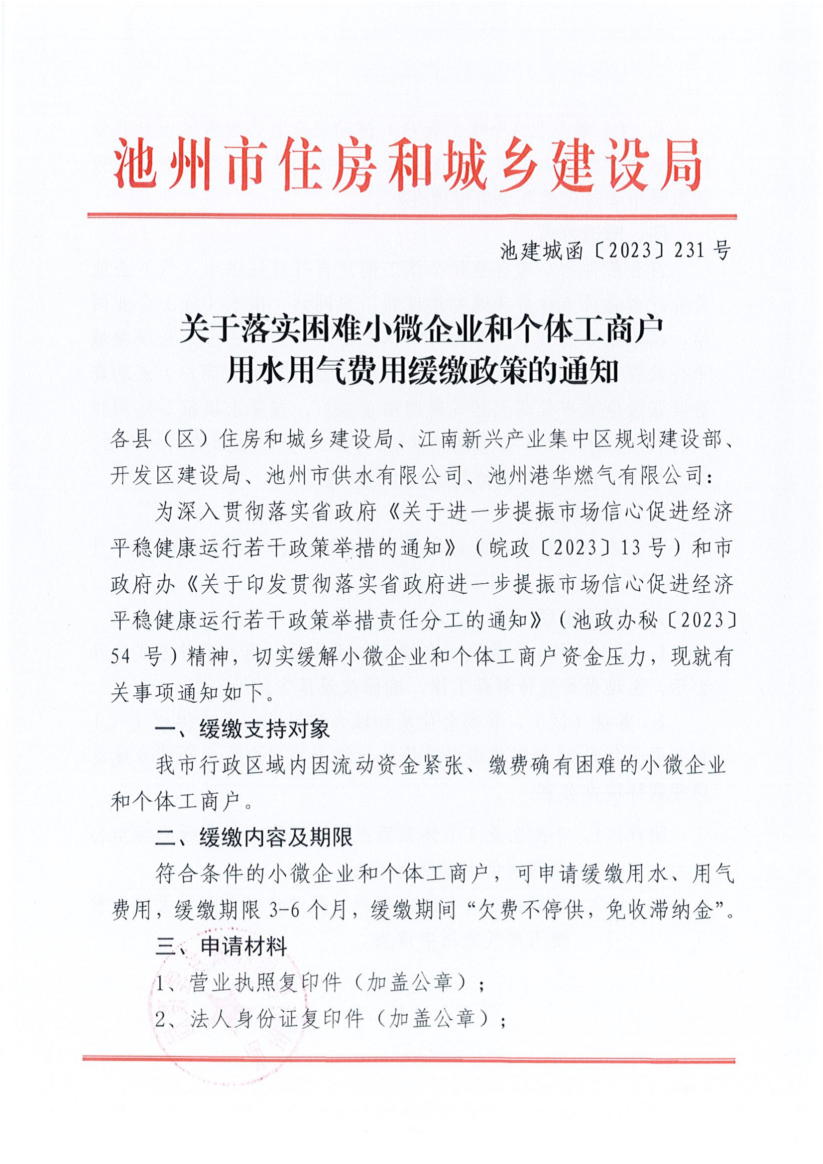 | 關于落實困難小微企業和個體工商戶 用水用氣費用緩繳政策的通知 | |