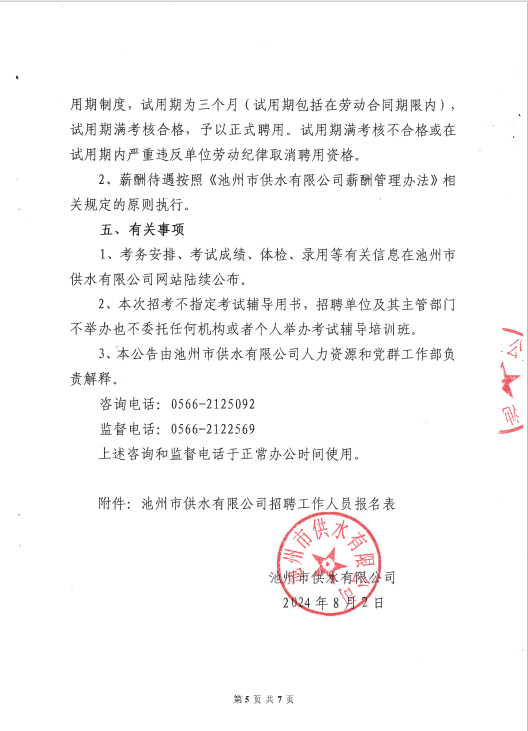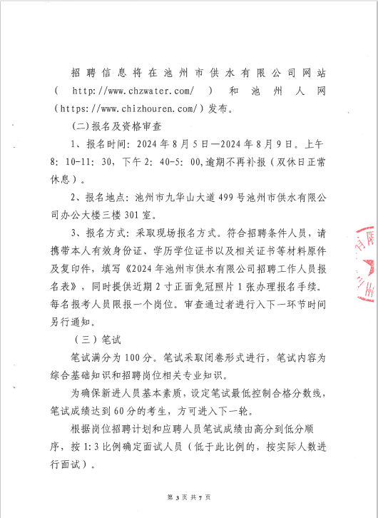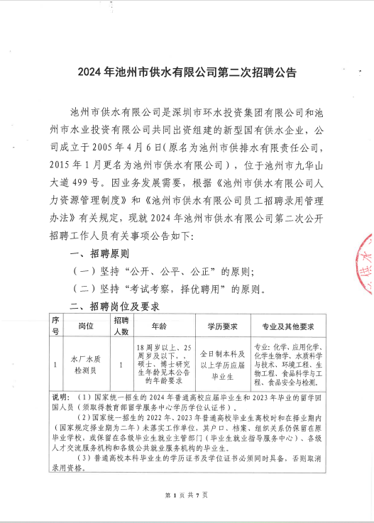 | 2024年池州市供水有限公司第二次招聘公告 | |