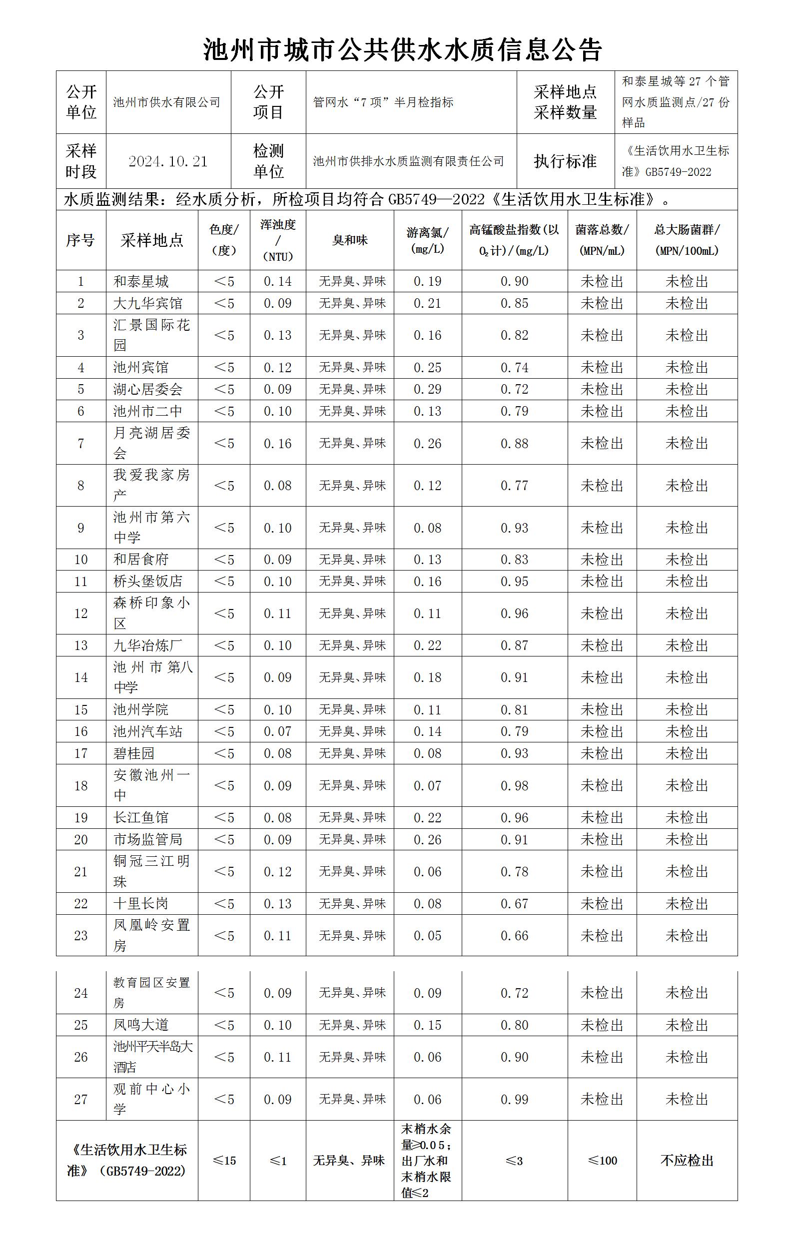 | 池州市城市公共供水水質(zhì)信息公告管網(wǎng)水“7項(xiàng)”半月檢指標(biāo)10-2 | |