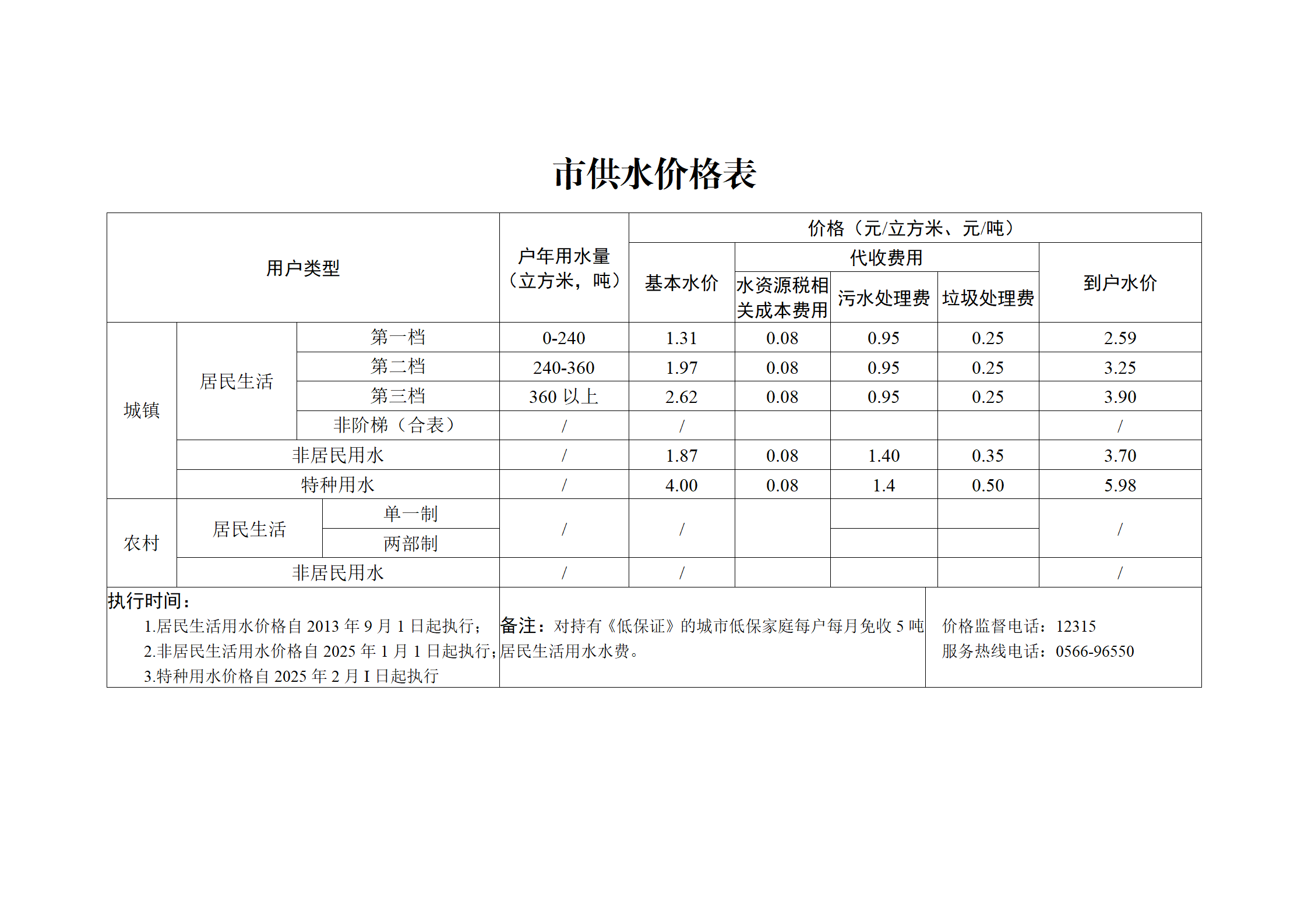 | 池州市供水有限公司供水價格表 | |