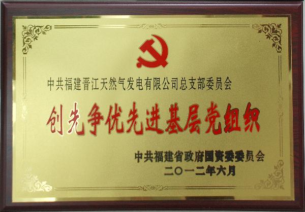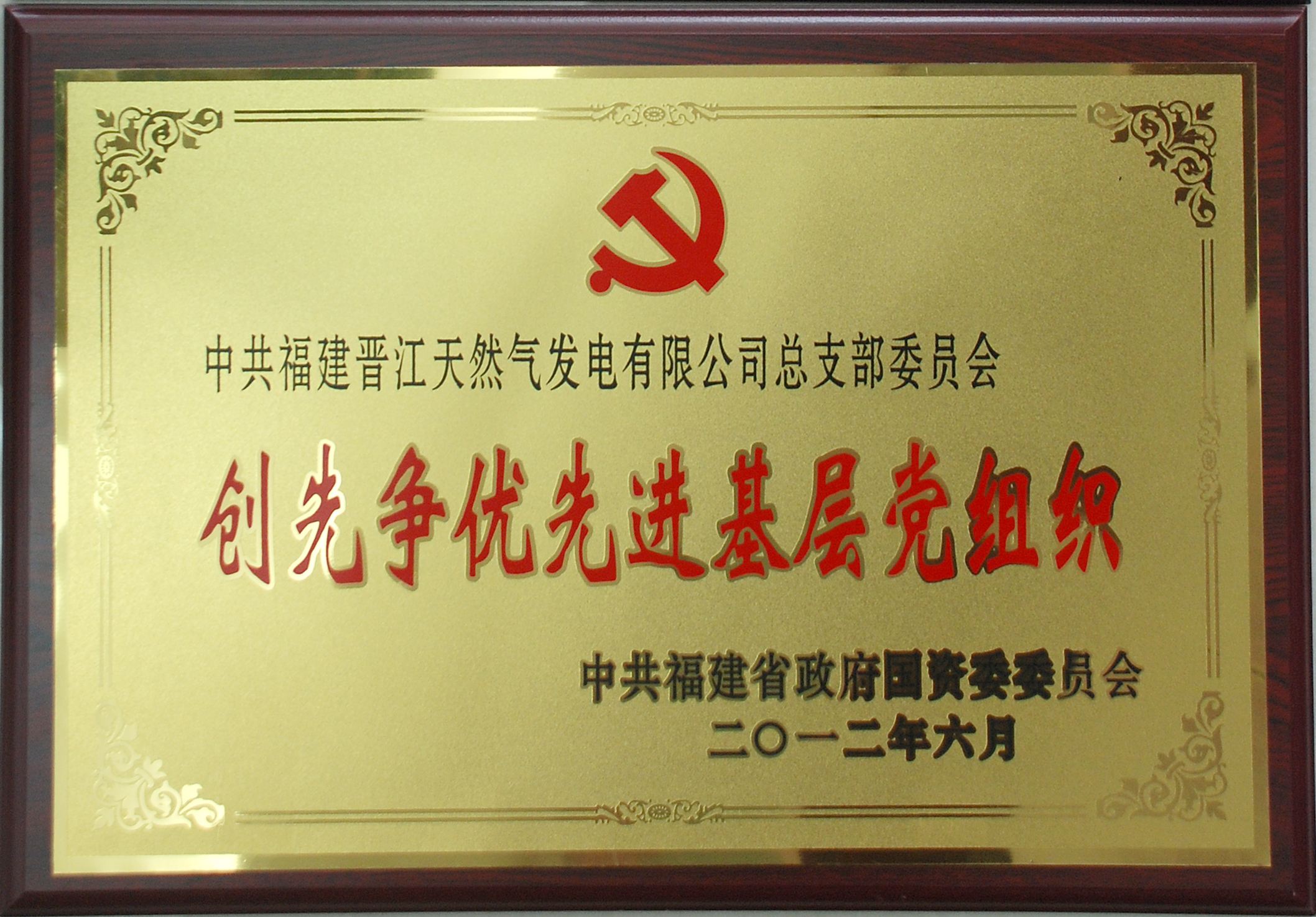 2016年6月中共福建省政府國資委委員會授予中共福建晉江天然氣發(fā)電有限公司總支部委員會創(chuàng)先爭優(yōu)先進基層黨組織