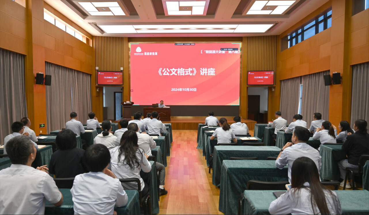 為進一步規范公文格式管理及規章制度管理,促進公文處理工作規范化、制度化管理,10月30日,公司綜合部主辦姚雅萍在第八期新能源大講堂上,圍繞“公文格式及規章制度管理規定”對公文規范相關內容進行宣貫講解。