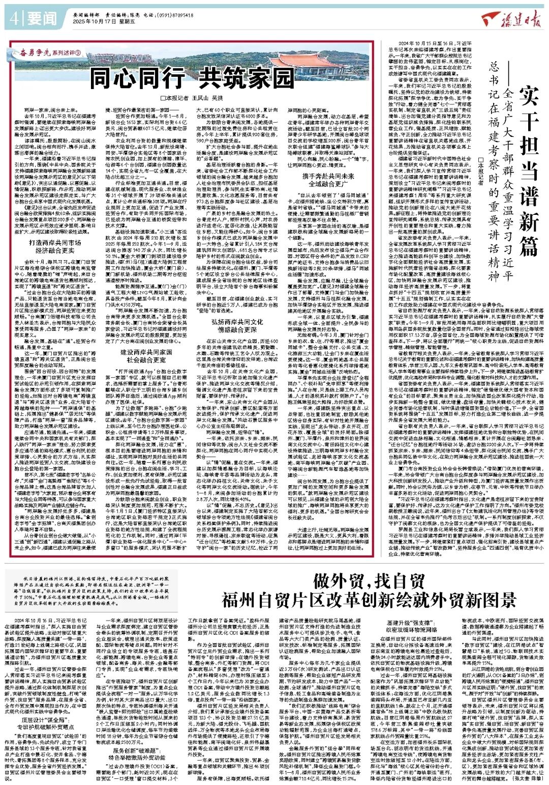 2024年10月15日至16日,習(xí)近平總書記再次親臨福建考察,作出重要指示。一年來,我省廣大干部群眾按照總書記擘畫的宏偉藍(lán)圖,錨定目標(biāo)、扎根崗位,實(shí)干擔(dān)當(dāng)、奮勇爭(zhēng)先,以實(shí)實(shí)在在的工作成效譜寫中國(guó)式現(xiàn)代化福建篇章。