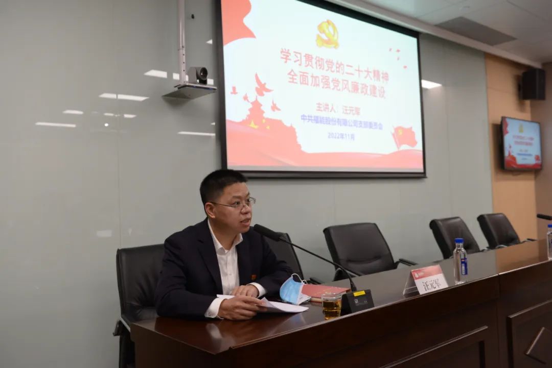公司黨支部紀(jì)檢委員汪元軍以《學(xué)習(xí)貫徹黨的二十大精神 全面加強(qiáng)黨風(fēng)廉政建設(shè)》為題,圍繞加強(qiáng)國(guó)企黨風(fēng)廉政建設(shè)的重要意義、如何抓好黨風(fēng)廉政建設(shè)、全面從嚴(yán)治黨不忘初心三個(gè)方面進(jìn)行闡釋。