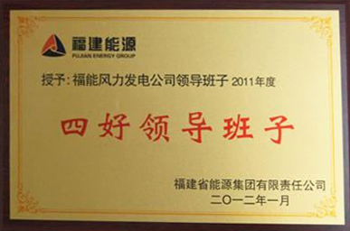 2012年1月,福能集團(tuán)授予福建省福能風(fēng)力發(fā)電有限公司領(lǐng)導(dǎo)班子2011年“四好領(lǐng)導(dǎo)班子”榮譽(yù)稱號