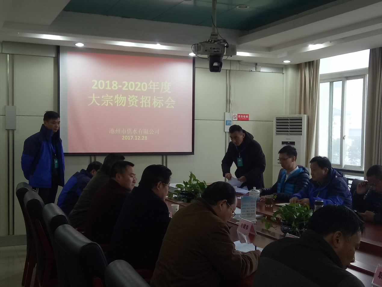 為加強公司物資采購管理工作,進一步規(guī)范公司常用物資的采購行為,降低采購成本,加強物資質(zhì)量的管理。12月28日,池州市供水有限公司在三樓會議室組織召開了2018-2020年度大宗物資集中采購招標會議。公司招標投標管理委員會成員、職工代表及使用部門代表出席了會議,市國資委、住建委、公共事業(yè)局李應友局長對本次招標進行了現(xiàn)場監(jiān)督。