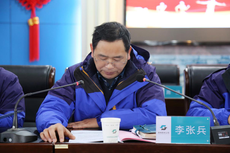 總經(jīng)理李張兵作《迎難而上 創(chuàng)新實(shí)干 譜寫(xiě)新格局下健康發(fā)展新篇章》年度工作報(bào)告,從突出供水主業(yè)、內(nèi)部管理、重點(diǎn)工作、文化建設(shè)、黨建引領(lǐng)等五個(gè)方面,全面回顧、總結(jié)公司2020年各項(xiàng)工作取得的新成果。他指出2020年公司售水量突破3000萬(wàn)噸歷史大關(guān),產(chǎn)銷(xiāo)差率取得10.93%的歷史最好成績(jī),69座老舊小區(qū)二次供水泵站改造提前完成,城鄉(xiāng)供水一體化發(fā)展取得新突破,公司喜獲安徽省第十二屆文明單位、第四屆池州市市長(zhǎng)質(zhì)量獎(jiǎng)提名獎(jiǎng)、2019年池州市雙擁優(yōu)秀單位等榮譽(yù)稱(chēng)號(hào),公司黨支部黨建品牌摘得市屬國(guó)有企業(yè)黨建品牌評(píng)審大賽一等獎(jiǎng)桂冠,公司發(fā)展呈現(xiàn)一派新氣象;同時(shí),他指出公司仍然面臨外部環(huán)境不確定、內(nèi)部活力待進(jìn)一步激發(fā)等的困難和挑戰(zhàn)。他要求,2021年,公司上下要?jiǎng)哿ν摹?jiān)定信念、保持定力,不斷提升經(jīng)營(yíng)管理、供水保障、用戶服務(wù)、業(yè)務(wù)拓展、創(chuàng)新發(fā)展能力,實(shí)施“131”工程,即推動(dòng)一項(xiàng)核心(水價(jià)調(diào)整)、推進(jìn)三項(xiàng)改革(機(jī)構(gòu)、薪酬和績(jī)效改革)、實(shí)施水源地保護(hù)工程等,他從六個(gè)方面全面部署了公司2021年各項(xiàng)工作及核心任務(wù)。