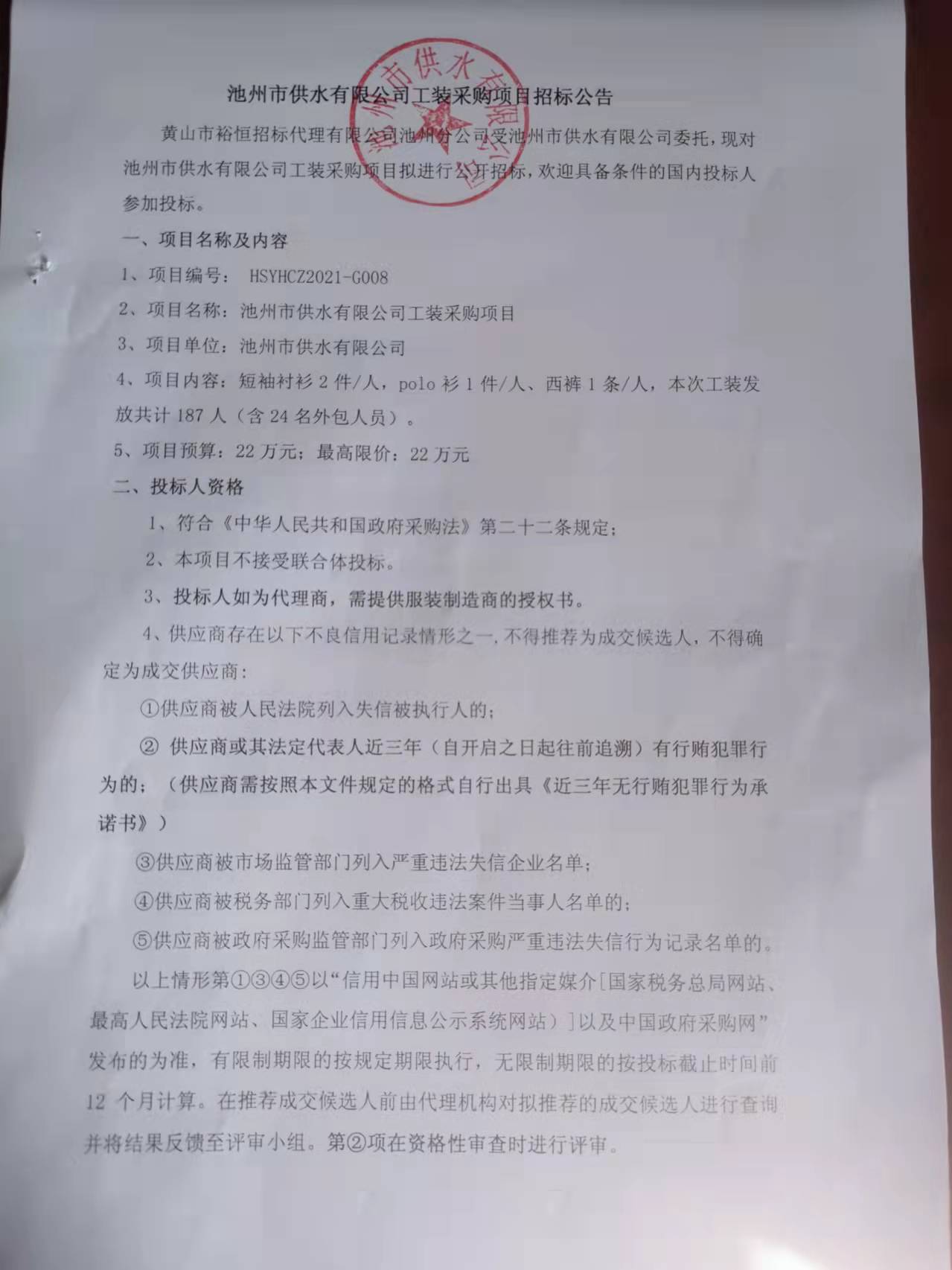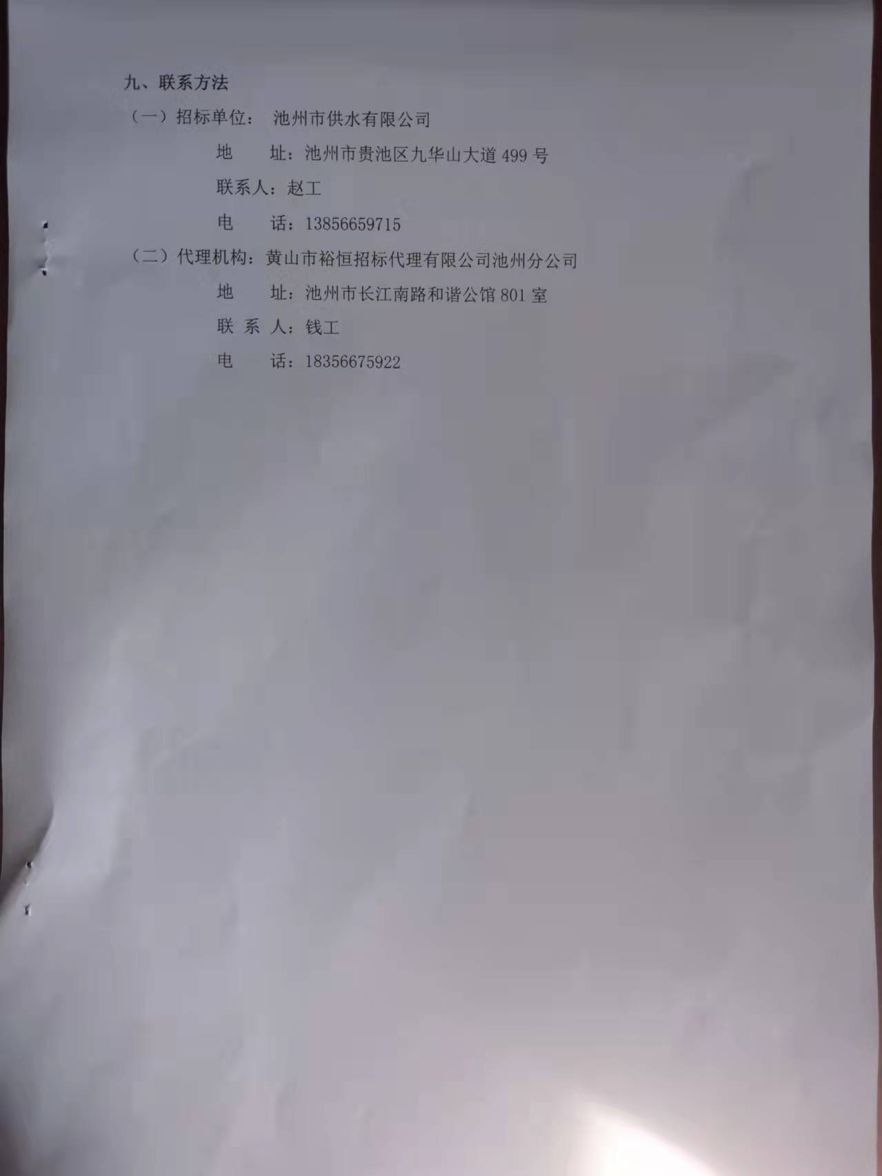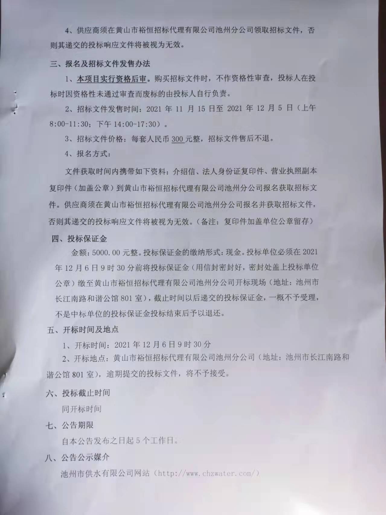 | 池州市供水有限公司工裝采購項目招標公告 | |