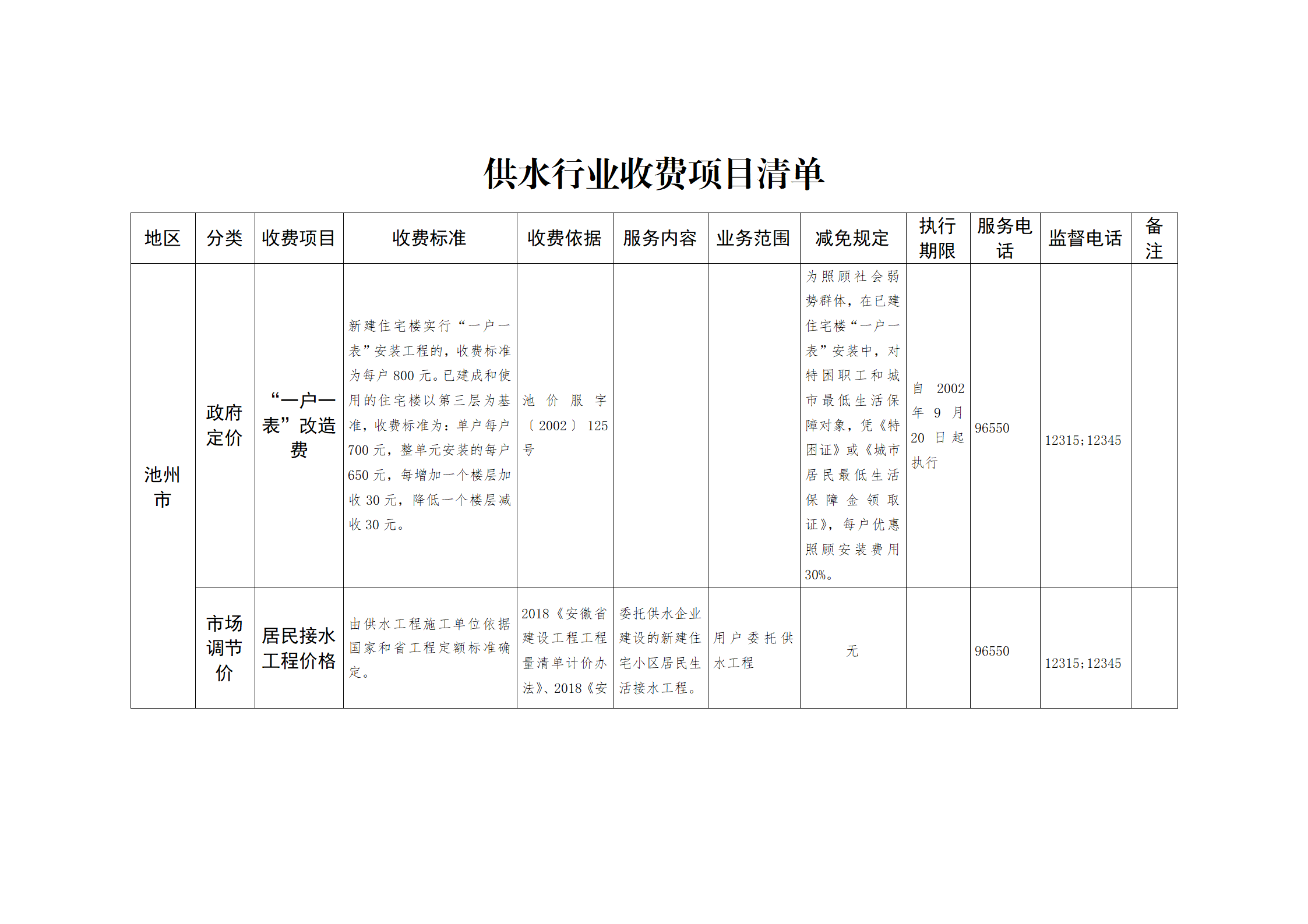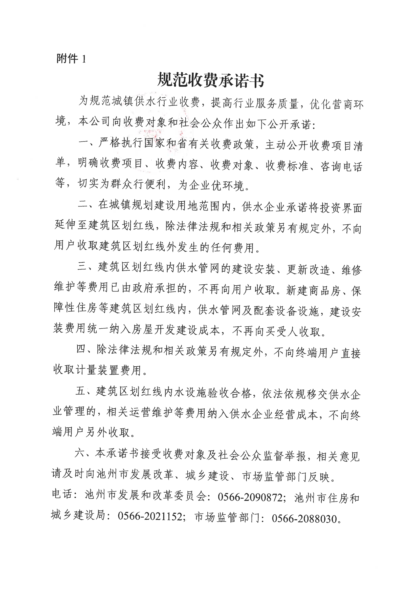 | 池州市供水有限公司收費項目清單及規范收費承諾書 | |